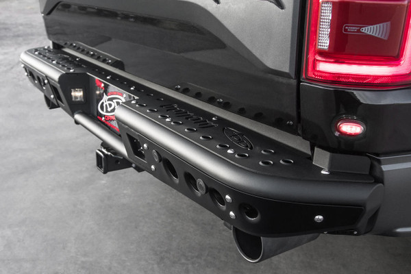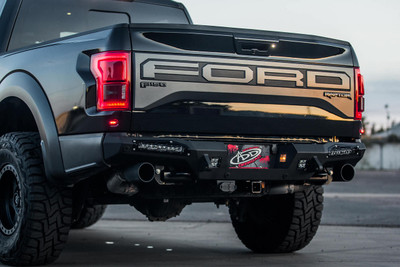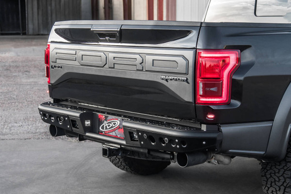 The ADD Off-Road Venom rear bumper is a low profile form fitted bumper that gives the 2017-2020 Ford Raptor a stylish look. Made from .120 wall steel tubing to provide your 2017-2020 3.5L Raptor with additional protection while give your truck a slim sleek look. Designed to retain the factory dual exhaust, tow hooks, and backup sensors. Dimple died steps provide a better surface for footwork and dual Dually mounts provide additional rear facing lighting.