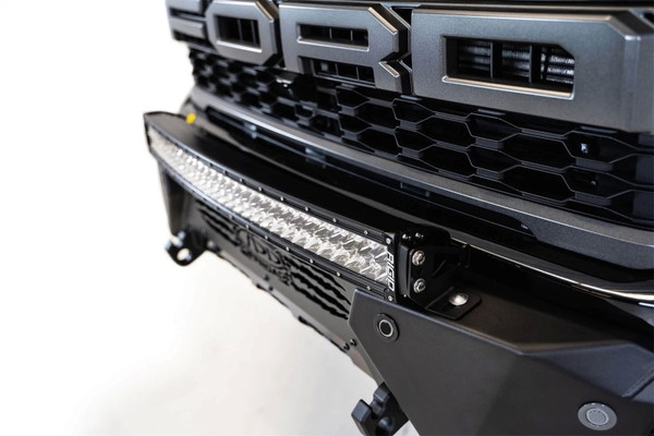The HoneyBadger front bumper is known for its sharp angles and rugged style. This bumper is available with, or without a top hoop. The top of the bumper has a light mount for a 30-inch radius LED light bar. An additional 20-inch LED light bar can be mounted behind the central panel. Single 10" SR lights can be mounted behind each of the side panels.The HoneyBadger Raptor front bumper was designed to follow the body lines of the truck perfectly, while bringing a more aggressive edge to its stance. The steel is finished in a hammer black powder coat, while the aluminum panels are finished in a satin black powder coat. There are sensor holes to retain the OEM parking sensors, and sensor hole plugs are supplied if your Raptor does not have front sensors. The OEM tow hooks fit perfectly underneath the bumper. Ford Raptor 2022 - Up Honey Badger Front Bumper Without Top Hoop With Mounts For Universal 30" RDS On Top And Universal 20" In Center And 10" SR In Sides In Hammer Black With Satin Black Panels The HoneyBadger Raptor front bumper was designed to follow the body lines of the truck perfectly, while bringing a more aggressive edge to its stance. The steel is finished in a hammer black powder coat, while the aluminum panels are finished in a satin black powder coat. There are sensor holes to retain the OEM parking sensors, and sensor hole plugs are supplied if your Raptor does not have front sensors. The OEM tow hooks fit perfectly underneath the bumper. 2021-2022 Ford Raptor