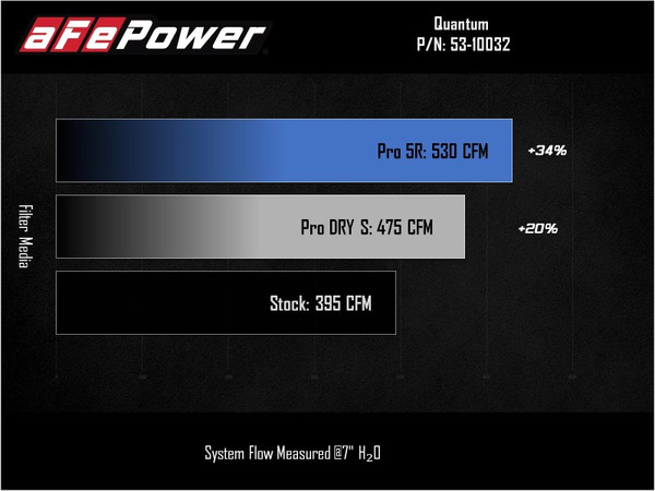 This 360-degree radial flow air filter features a 5" flange and our oil-free Pro DRY S media with three layers of synthetic media for maximum convenience. Its progressive layering provides great filtration efficiency and dust holding capacity, while not requiring the use of oils. This media is best suited for street and light off-road use. The filter features an injection molded base and top for lighter weight and rigidity. Its base includes a built-in 3-angle velocity stack for smooth, even airflow and captive screws to easily attach the filter to the housing. Quantum uses an integrated filter-to-housing design that attaches both components with four captive screws, making for a positive surface area seal, as well as easy installation and maintenance. Its durable sealed housing features a unique, five rib, industrial-grade look for aFe quality recognition. Quantum uses a dyno-tuned, computer designed intake tube to achieve optimum air flow and a perfect fit. Its XLPE (cross-linked polyethylene) polymer material is heat soak resistant and extremely durable. This Quantum intake system includes a flexible bellows-style coupling and a durable reinforced silicone coupling. Quantum intakes are designed with fewer parts for a quick and easy installation. This is a direct fit intake system that utilizes factory mounting points and requires no cutting or modifications. All necessary clamps, couplings, and hardware are included. QUANTUM Cold Air Intake System w/ Pro DRY S Media Dodge Diesel Trucks 03-07 L6-5.9L (td) Dodge Diesel Trucks 03-07 L6-5.9L (td) Fitment: 2003 Dodge Ram 2500 Laramie 2003 Dodge Ram 2500 SLT 2003 Dodge Ram 2500 ST 2003 Dodge Ram 3500 Laramie 2003 Dodge Ram 3500 SLT 2003 Dodge Ram 3500 ST 2004 Dodge Ram 2500 SLT 2004 Dodge Ram 2500 ST 2004 Dodge Ram 3500 Laramie 2004 Dodge Ram 3500 SLT 2004 Dodge Ram 3500 ST 2005 Dodge Ram 2500 Laramie 2005 Dodge Ram 2500 SLT 2005 Dodge Ram 2500 ST 2005 Dodge Ram 3500 Laramie 2005 Dodge Ram 3500 SLT 2005 Dodge Ram 3500 ST 2006 Dodge Ram 2500 Laramie 2006 Dodge Ram 2500 SLT 2006 Dodge Ram 2500 Sport 2006 Dodge Ram 2500 ST 2006 Dodge Ram 2500 TRX4 2006 Dodge Ram 3500 Laramie 2006 Dodge Ram 3500 SLT 2006 Dodge Ram 3500 Sport 2006 Dodge Ram 3500 ST 2007 Dodge Ram 2500 Laramie 2007 Dodge Ram 2500 SLT 2007 Dodge Ram 2500 Sport 2007 Dodge Ram 2500 ST 2007 Dodge Ram 2500 TRX4 2007 Dodge Ram 3500 Laramie 2007 Dodge Ram 3500 SLT 2007 Dodge Ram 3500 Sport 2007 Dodge Ram 3500 ST 2007 Dodge Ram 3500 TRX4