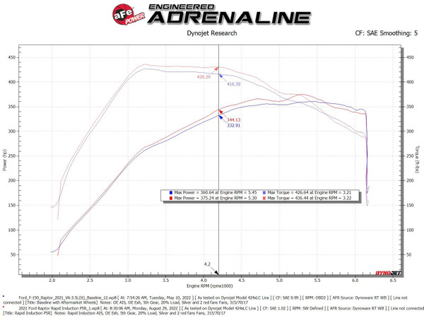 aFe Rapid Induction Cold Air Intake System w/Pro 5R Oiled Filter 2021-2025 Ford F-150 Raptor GEN3 V6-3.5L (tt) - 52-10015R
