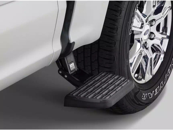 Side steps for hard-working trucks. The AMP Research BedStep2 mounts just behind the cab, forward of the rear wheel, providing a faster, easier and safer route to access toolboxes, equipment and cargo in the bed. Easily installed, this frame-mounted, retractable truck step can be mounted on either side of the truck box, and it flips down or retracts with just the nudge of your foot. BEDSTEP2 is made in the USA and backed by a 3-year/36,000-mile warranty.