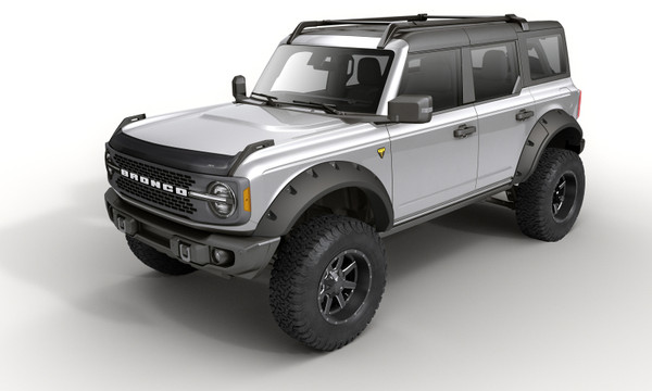 Put the first name in low-profile hood protection to work at the front of your rig. The AVS Aeroskin??keeps bugs, dirt and debris off your paint and out of your way while adding that better-than-factory custom touch. Built from high-quality ABS impact-resistant acrylic available in dark smoke finish, matte black or chrome. Custom molded to the contours of your vehicle to fit better and last longer. Its simple, no-drill installation with 3M automotive-grade adhesive tape gets your car, truck, van or SUV fully protected, looking good, and back on the road in no time. Proudly made in the USA with global materials. Aeroskin Smoke Hood Protector; Low Profile; Will NOT fit Raptor models 2021-2024 Ford Bronco, 2021-2024 Ford Bronco Badlands, 2021-2024 Ford Bronco Base, 2021-2024 Ford Bronco Big Bend, 2021-2024 Ford Bronco Black Diamond, 2021-2024 Ford Bronco Everglades, 2023 Ford Bronco Heritage Edition, 2023 Ford Bronco Heritage Limited Edition, 2021-2024 Ford Bronco Outer Banks, 2021-2024 Ford Bronco Wildtrak