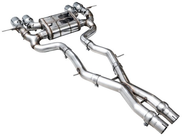 The AWE SwitchPatha*? Exhaust is comprised of 3-inch U.S.-sourced T304L stainless steel, a precision x-pipe, and a valved SwitchPatha*? muffler tuned for the S58. Beginning after the factory mid pipe, the precision X-pipe immediately cures the S58 of its rasp, deepening the tone before it's refined further by the bespoke SwitchPatha*? muffler. When the valves are closed, the SwitchPatha*? produces a refined, aggressive howl while remaining full-bodied and powerful a** no congested, metallic sounds when you're on it. At cruising, interior acoustics are close to stock with no drone. AWE SwitchPatha*? tech responds perfectly to the many transmission settings and shift points of the G87. Drop the hammer with the valves closed and SwitchPatha*? sings a proper M anthem. If you were to leave the valves closed at all times after equipping SwitchPatha*?, we wouldna**t blame you a** ita**s that gooda*? all of the time. Open the valves and the S58a**s roar is uncorked. Sport and Sport+ modes achieve the ultimate contrast in behavior when compared to comfort driving modes (aka valves closed). In Sport mode, the exhaust note is powerful, clean, and aggressive. In Sport+ mode, the same aggression appliesa*? but with grin-provoking burbles. Thanks to the precision X-pipe, the rasp is still kept in check while allowing the exhaust note to reach full aggression. The AWE SwitchPatha*? comes with quad 4.5a*? double-walled, slash-cut tips available in chrome silver or diamond black. The exhaust also features inlet adapters to mate to the factory mid-section. When pairing AWE Mid-Pipes to the SwitchPatha*? or Track Edition Exhausts, these adapters are not needed. Due to varying cut points, AWE Exhausts are not guaranteed to mate with another manufacturera**s mid pipes. AWE's No CEL Guarantee, Perfect Fitment Guarantee, and Lifetime Warranty come standard. AWE SwitchPatha*? Exhaust for BMW G87 M2 - Chrome Silver Tips Fitment: 2023 BMW M2 Base 2024 BMW M2 Base