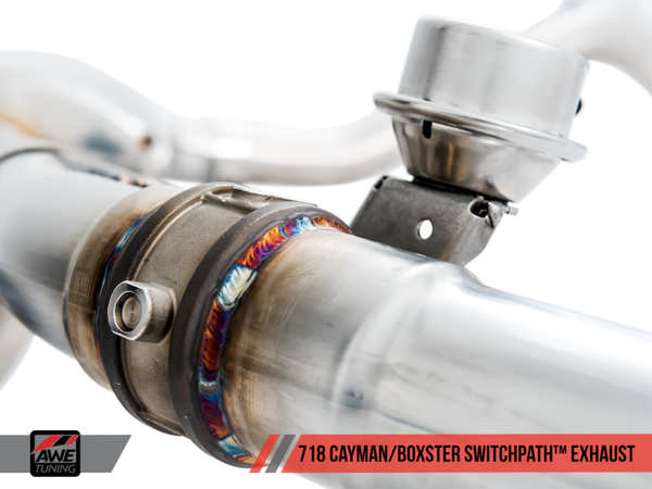 Have PSE and want to remain in control over your exhaust’s tone at the press of the PSE button? Perfect. We created the SwitchPath™ Exhaust for the Boxster and Cayman to do just that, for drivers just like you. Valve closed for sophistication, valve open for aggression. Sport mode? Yes please, extra burbles. Equipped with a tuned muffler on the driver’s side and a valved straight section on the passenger’s side, the SwitchPath™ Exhaust’s soundtrack is pleasantly different dependent on its operating state. Drone-free mood control accompanied by addicting crackles and straight-through performance. When it comes to tips, the SwitchPath finishes off with 102mm slash cut tips, featuring the AWE logo, so they know what team you're on. All tips are individually adjustable, allowing depth into the bumper to be set according to personal taste. They're also double walled to ensure a mirror finish - even under hard usage. Please note: this SwitchPath™ Exhaust is only applicable to cars equipped with the PSE option. AWE SwitchPath™ Exhaust for Porsche 718 Boxster / Cayman (PSE Only) - Chrome Silver Tips Fitment: 2017 Porsche 718 Boxster Base 2017 Porsche 718 Boxster S 2017 Porsche 718 Cayman Base 2017 Porsche 718 Cayman S 2018 Porsche 718 Boxster Base 2018 Porsche 718 Boxster GTS 2018 Porsche 718 Boxster S 2018 Porsche 718 Cayman Base 2018 Porsche 718 Cayman GTS 2018 Porsche 718 Cayman S 2019 Porsche 718 Boxster Base 2019 Porsche 718 Boxster GTS 2019 Porsche 718 Boxster S 2019 Porsche 718 Cayman Base 2019 Porsche 718 Cayman GTS 2019 Porsche 718 Cayman S 2020 Porsche 718 Boxster Base 2020 Porsche 718 Boxster S 2020 Porsche 718 Cayman Base 2020 Porsche 718 Cayman GT4 2020 Porsche 718 Cayman S