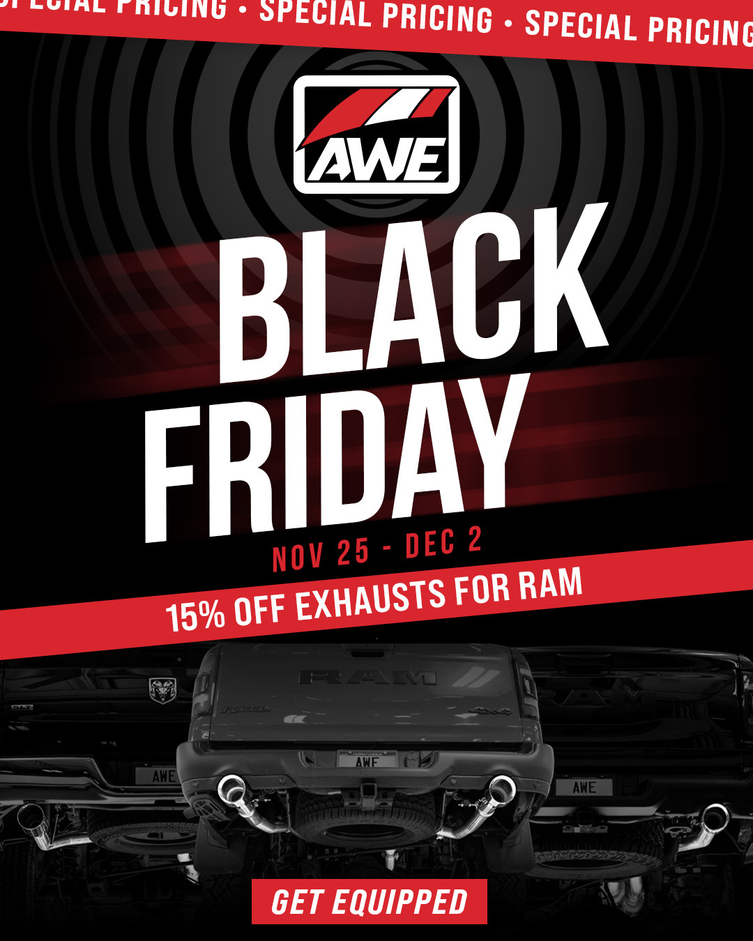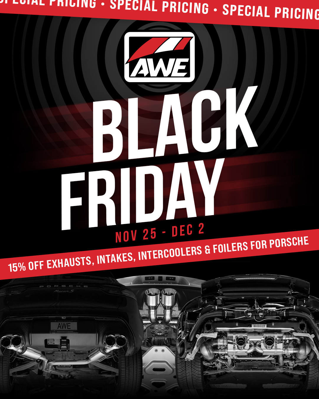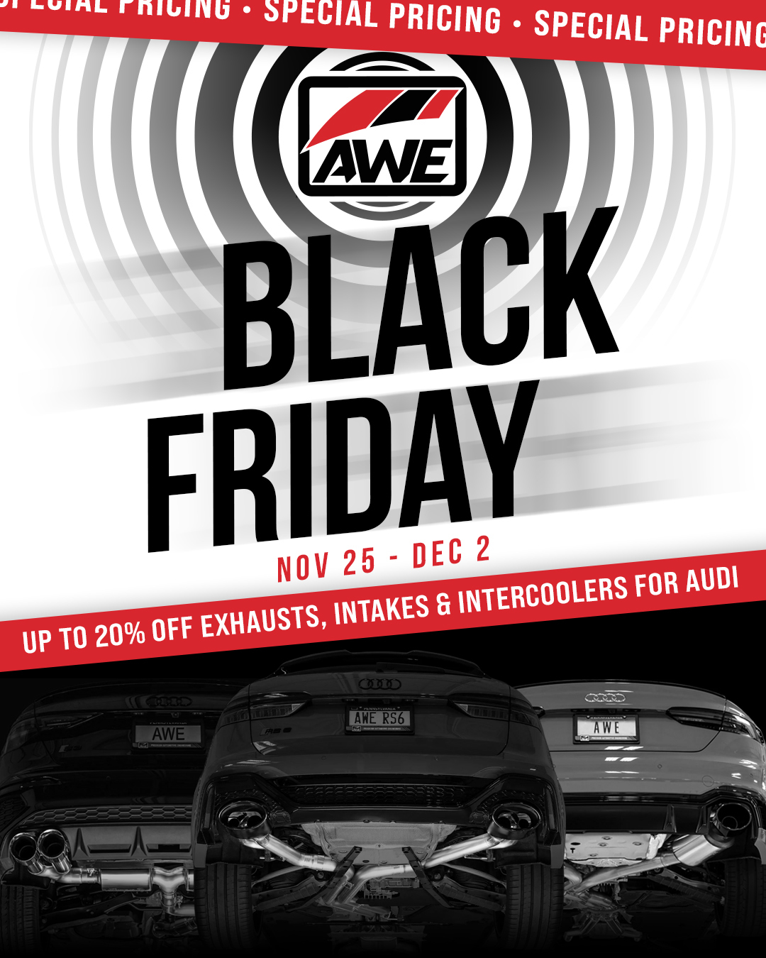 AWE Tuning Black Friday & Cyber Monday 2025—Save Up to 20% (Nov 25 – Dec 2).