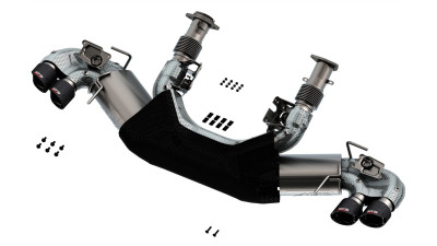 Developing systems for the C8 Corvette presented Borla engineers with unique challenges, but our team was up to the challenge. Great care was taken to ensure the integrity and function of the system as well as the vehicle itself. Part number 140839BC includes both AFM and NPP dual mode exhaust valves. It features the ATAK sound level, our most aggressive sound. It provides a more exciting driving experience without any drone. It features our Polyphonic Harmonizer and SwitchFire? technology. Borla'S Polyphonic Harmonizer Technology utilizes patented units that contain pipes of different diameters and lengths to create multiple exhaust notes that harmonize to deliver a clean, rich, full-bodied sound. Completely eliminating the turbulent center intersection of a standard X-Pipe, Borla'S patented SwitchFire? design truly blends the combustion pulses from both sides of the engine for improved performance and a custom aggressive sound. Strategically placed heat shielding is included to prevent exhaust heat damage and protect your Corvette. It comes with 4" Polished T-304 stainless steel tips and is available with Black Chrome on T-304 stainless steel tips part number 140839BC or Carbon Fiber tips, part number 140839CF. The system is constructed using T-304 stainless steel and is backed by our Million Mile Warranty. Note: After installation of the Borla system, the controllers for the AFM and NPP valves in the exhaust system should be re-calibrated according to GM Document ID 5406413. Borla recommends taking your car to the nearest Chevrolet dealer for exhaust valve recalibration services. ATAK? Axle-Back Exhaust System 2020-2024 Chevrolet Corvette (C8) 6.2L V8 Automatic Transmission Rear Wheel Drive 2 Door. 2020-2024 Chevrolet Corvette (C8) 6.2L V8 Automatic Transmission Rear Wheel Drive 2 Door. Fitment: 2020-2024 Chevrolet Corvette Stingray 2021 Chevrolet Corvette Stingray