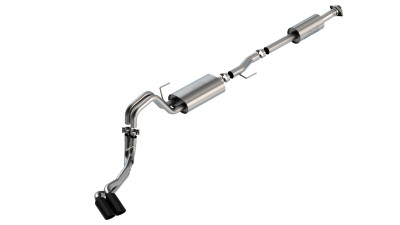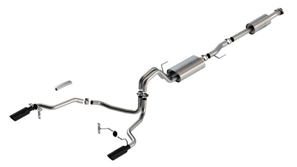The Borla(r) Cat-Back(tm) system 140879BC was specifically designed to enhance the power and sound of the Ford F-150 equipped with 3.3L engine. It includes black chromed T-304 stainless steel tips and a split rear exit configuration. The entire system is made of T-304 stainless steel and utilizes computer numerical control (CNC) manufacturing techniques that ensure an accurate fit. This system features the "ATAK(r)" sound level that gives you our most aggressive sound level with no drone. It is also available with bright chromed tips (part number 140879). There are also systems available for the 3.3L F-150 that offer different options for sound level, tip finish and tip exits. All this is backed by our unsurpassed Million Mile Warranty., System Features:, Cat-Back(tm) System, Split Rear Exit, Black Chrome On T-304 Stainless Steel Tips, ATAK(r) Sound Level, T-304 Stainless Steel Construction, Bolt-On Installation, Million Mile Warranty ATAK(r) Cat-Back(tm) Exhaust System 2021-2023 F-150 3.3L V6 Automatic Transmission 2 & 4 Wheel Drive 4 Door Crew Cab Short Bed (5' 5")/ Extended Cab Standard Bed (6' 7") 145.4" Wheelbase. 2021-2023 F-150 3.3L V6 Automatic Transmission 2 & 4 Wheel Drive 4 Door Crew Cab Short Bed (5' 5")/ Extended Cab Standard Bed (6' 7") 145.4" Wheelbase. Fitment: 2021-2023 F-150 XL 2021-2023 F-150 XLT 2022 Ford F-150 XL 2022 Ford F-150 XLT