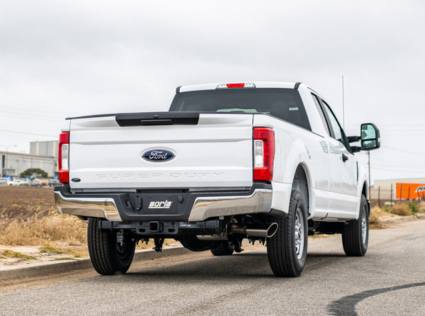 This Cat-Back? system was developed for use on F-250 and F-350 Super Duty trucks with performance, sound, style and durability in mind. The computer numerical control (CNC) formed pipes ensure the best possible flow for horsepower and torque. The muffler is specifically designed to give the 6.2L engine the sound an enthusiast would enjoy without the resonance (drone) that they don't. Only T-304 stainless steel is used in the construction of Borla? systems, that allows us to give you a Million Mile warranty. These systems can be adapted to the different wheel bases offered by Ford and come with either a bright chrome on T-304 stainless steel (140798) or black chrome on T-304 stainless steel (140798BC) tip. Cat-Back System for F-250/F-350 SUPER DUTY '17-'19 6.2L V8 AT 2+4WD 4DR 160"WB 2.75", 3.50" "S-TYPE" S RD RL AC S TIP: 5.00" RD X 13.50". F-250/F-350 SUPER DUTY '17-'19 6.2L V8 AT 2+4WD 4DR 160"WB 2.75", 3.50" "S-TYPE" S RD RL AC S TIP: 5.00" RD X 13.50" Fitment: 2017 Ford F-250 Super Duty King Ranch 2017 Ford F-250 Super Duty Lariat 2017 Ford F-250 Super Duty Platinum 2017 Ford F-250 Super Duty XL 2017 Ford F-250 Super Duty XLT 2017 Ford F-350 Super Duty King Ranch 2017 Ford F-350 Super Duty Lariat 2017 Ford F-350 Super Duty Platinum 2017 Ford F-350 Super Duty XL 2017 Ford F-350 Super Duty XLT 2018 Ford F-250 Super Duty King Ranch 2018 Ford F-250 Super Duty Lariat 2018 Ford F-250 Super Duty Platinum 2018 Ford F-250 Super Duty XL 2018 Ford F-250 Super Duty XLT 2018 Ford F-350 Super Duty King Ranch 2018 Ford F-350 Super Duty Lariat 2018 Ford F-350 Super Duty Platinum 2018 Ford F-350 Super Duty XL 2018 Ford F-350 Super Duty XLT 2019 Ford F-250 Super Duty King Ranch 2019 Ford F-250 Super Duty Lariat 2019 Ford F-250 Super Duty Platinum 2019 Ford F-250 Super Duty XL 2019 Ford F-250 Super Duty XLT 2019 Ford F-350 Super Duty King Ranch 2019 Ford F-350 Super Duty Lariat 2019 Ford F-350 Super Duty Platinum 2019 Ford F-350 Super Duty XL 2019 Ford F-350 Super Duty XLT 2020 Ford F-250 Super Duty King Ranch 2020 Ford F-250 Super Duty Lariat 2020 Ford F-250 Super Duty Platinum 2020 Ford F-250 Super Duty XL 2020 Ford F-250 Super Duty XLT 2020 Ford F-350 Super Duty King Ranch 2020 Ford F-350 Super Duty Lariat 2020 Ford F-350 Super Duty Platinum 2020 Ford F-350 Super Duty XL 2020 Ford F-350 Super Duty XLT 2021 Ford F-250 Super Duty King Ranch 2021 Ford F-250 Super Duty Lariat 2021 Ford F-250 Super Duty Platinum 2021 Ford F-250 Super Duty XL 2021 Ford F-250 Super Duty XLT 2021 Ford F-350 Super Duty King Ranch 2021 Ford F-350 Super Duty Lariat 2021 Ford F-350 Super Duty Platinum 2021 Ford F-350 Super Duty XL 2021 Ford F-350 Super Duty XLT