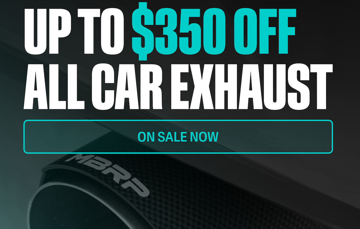 Now through April 30, 2026, shop discounted MBRP exhaust systems for Mustang, Camaro, Corvette, Supra MKV, Challenger, Charger, WRX and more.