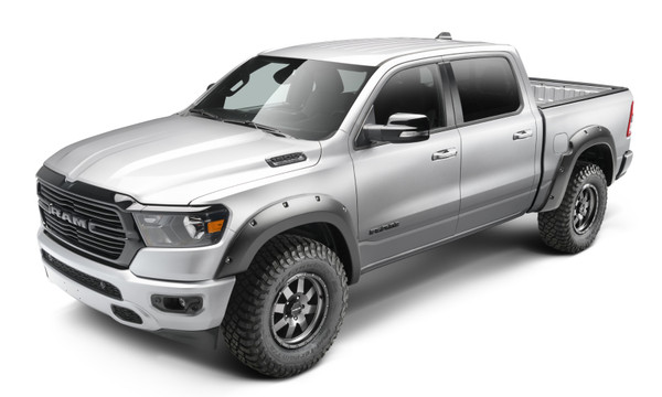 Bushwacker Forge(R) Fender Flares are new to the Bushwacker line up and offer the popular rivet style with a rugged textured finish. The new Forge flare comes with black rivet hardware for the to highlight the look of a bolted-on flare. These flares complement oversized tires while providing tire protection. Made with our durable ABS Material it provides a dense, hard and scratch-resistant surface, flexible enough to bend without breaking. Forge Style Fender Flares; 4 pc.; Pocket/Rivet Style; Front Tire Coverage 2 in.; Front Height 6.42 in.; Rear Tire Coverage 2.6 in; Rear Height 5.95 in.; Textured Finish; Black; 2019-2022 Ram 1500 Big Horn; 2020-2022 Ram 1500 HFE; 2019-2022 Ram 1500 Laramie; 2019-2020 Ram 1500 Laramie Longhorn; 2019-2022 Ram 1500 Limited; 2021-2022 Ram 1500 Limited Longhorn; 2019-2022 Ram 1500 Lone Star; 2020-2022 Ram 1500 Special Service; 2019-2022 Ram 1500 Tradesman; 2021-2022 Ram 1500 TRX; 2021 Ram 1500 TRX Launch Edition Fitment: 2019Ram1500Big Horn 2019Ram1500HFE 2019Ram1500Laramie 2019Ram1500Laramie Longhorn 2019Ram1500Limited 2019Ram1500Lone Star 2019Ram1500Tradesman 2020Ram1500Big Horn 2020Ram1500HFE 2020Ram1500Laramie 2020Ram1500Laramie Longhorn 2020Ram1500Limited 2020Ram1500Lone Star 2020Ram1500Special Service 2020Ram1500Tradesman 2021Ram1500Big Horn 2021Ram1500HFE 2021Ram1500Laramie 2021Ram1500Laramie Longhorn 2021Ram1500Limited 2021Ram1500Lone Star 2021Ram1500Special Service 2021Ram1500Tradesman 2021Ram1500TRX 2022Ram1500Big Horn 2022Ram1500HFE 2022Ram1500Laramie 2022Ram1500Limited 2022Ram1500Lone Star 2022Ram1500Special Service 2022Ram1500Tradesman 2022Ram1500TRX
