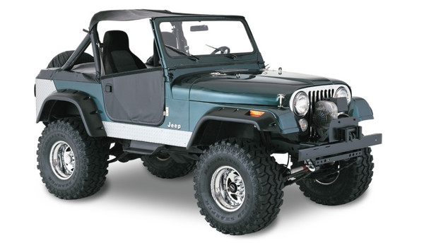 For extreme off-road use, there's nothing else like Bushwacker Cut-Out(TM) Fender Flares. Each set of Cut-Out(TM) Fender Flares is individually designed for your Jeep CJ Series, to maximize off-road wheel travel and maintain adequate tire coverage. That custom approach means a smoother appearance, greater strength, and?easier bolt-on installation with tough stainless steel hardware. As the name says, Cut-Out(TM) Fender Flares require cutting body sheet metal to achieve maximum articulation and coverage for oversized tires (see the installation guide for your specific model for complete details) . Cut-Out(TM) Fender Flares are made from thick, warp-proof Dura-Flex(R) 2000 TPO, our own proprietary material, engineered for added durability and flexibility in severe conditions. Its UV protection guards against chalking, while its pro-grade matte black finish looks great as-is, or custom painted to create your own personal look. Cut-Out(TM) Fender Flares offer extreme performance with style to match. BUSHWACKER - FENDER FLARES BW For extreme off-road use, there?s nothing like Bushwacker Cut-Out? Fender Flares. Each set of Cut-Out Fender Flares is individually designed for your vehicle to maximize off-road wheel travel and maintain adequate tire coverage. That custom approach means a smoother appearance, greater strength, and easier bolt-on installation. As the name says, Cut-Out Fender Flares require cutting body sheet metal to achieve maximum articulation and coverage for oversized tires (see the installation guide for your specific model for complete details). Cut-Out Fender Flares are made from thick, warp-proof Dura-Flex? 2000?our own proprietary material?and engineered for added durability and flexibility in severe conditions. The UV protection guards against chalking, while the pro-grade matte black finish looks great as-is or custom painted to create 1959-1983 Jeep CJ5; 1959-1960 Jeep CJ6; 1966-1975 Jeep CJ6; 1966-1968 Jeep CJ6A; 1976-1986 Jeep CJ7; 1956-1958 Jeep Willys CJ-6 Fitment: 1956JeepWillysCJ-6 1957JeepWillysCJ-6 1958JeepWillysCJ-6 1959JeepCJ5Base 1959JeepCJ6Base 1960JeepCJ5Base 1960JeepCJ6Base 1961JeepCJ5Base 1962JeepCJ5Base 1963JeepCJ5Base 1964JeepCJ5Base 1965JeepCJ5Base 1966JeepCJ5Base 1966JeepCJ5ABase 1966JeepCJ6Base 1966JeepCJ6ABase 1967JeepCJ5Base 1967JeepCJ5ABase 1967JeepCJ6Base 1967JeepCJ6ABase 1968JeepCJ5Base 1968JeepCJ5ABase 1968JeepCJ6Base 1968JeepCJ6ABase 1969JeepCJ5Base 1969JeepCJ6Base 1970JeepCJ5Base 1970JeepCJ6Base 1971JeepCJ5Base 1971JeepCJ6Base 1972JeepCJ5Base 1972JeepCJ6Base 1973JeepCJ5Base 1973JeepCJ6Base 1974JeepCJ5Base 1974JeepCJ6Base 1975JeepCJ5Base 1975JeepCJ5Renegade 1975JeepCJ6Base 1976JeepCJ5Base 1976JeepCJ5Renegade 1976JeepCJ7Base 1976JeepCJ7Renegade 1977JeepCJ5Base 1977JeepCJ5Golden Eagle 1977JeepCJ5Renegade 1977JeepCJ7Base 1977JeepCJ7Golden Eagle 1977JeepCJ7Renegade 1978JeepCJ5Base 1978JeepCJ5Golden Eagle 1978JeepCJ5Renegade 1978JeepCJ7Base 1978JeepCJ7Golden Eagle 1978JeepCJ7Renegade 1979JeepCJ5Base 1979JeepCJ5Golden Eagle 1979JeepCJ5Renegade 1979JeepCJ7Base 1979JeepCJ7Golden Eagle 1979JeepCJ7Renegade 1980JeepCJ5Base 1980JeepCJ5Golden Eagle 1980JeepCJ5Laredo 1980JeepCJ5Renegade 1980JeepCJ7Base 1980JeepCJ7Golden Hawk 1980JeepCJ7Laredo 1980JeepCJ7Renegade 1981JeepCJ5Base 1981JeepCJ5Laredo 1981JeepCJ5Renegade 1981JeepCJ7Base 1981JeepCJ7Laredo 1981JeepCJ7Renegade 1982JeepCJ5Base 1982JeepCJ5Laredo 1982JeepCJ5Limited 1982JeepCJ5Renegade 1982JeepCJ7Base 1982JeepCJ7Laredo 1982JeepCJ7Limited 1982JeepCJ7Renegade 1983JeepCJ5Base 1983JeepCJ5Laredo 1983JeepCJ5Limited 1983JeepCJ5Renegade 1983JeepCJ7Base 1983JeepCJ7Laredo 1983JeepCJ7Limited 1983JeepCJ7Renegade 1984JeepCJ7Base 1984JeepCJ7Renegade 1985JeepCJ7Base 1985JeepCJ7Laredo 1985JeepCJ7Renegade 1986JeepCJ7Base 1986JeepCJ7Laredo 1986JeepCJ7Renegade