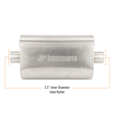 This SLP muffler kit is constructed with polished, 304 stainless steel that's built to last. The inner core is ceramic-wrapped and perforated to reduce high-frequency noise and in-car resonance. The mufflers have a 2-1/2" inlet and outlet and can be mounted by welding or clamping them to your exhaust. The overall length is 18-3/16" with a 4-1/2" body diameter.