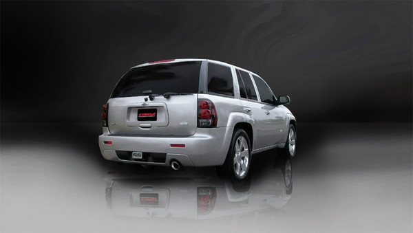 CORSAs Patented Reflective Sound Cancellation® (RSC) Technology allows acoustic engineers to create a drone free exhaust sound, styled specifically to fit the personality of your vehicle. Each system is designed to increase vehicle performance, deliver an AGGRESSIVE SOUND under acceleration and a DRONE-FREE EXPERIENCE during cruise. Performance gains are not affected by sound choice. Sport Cat-Back Exhaust System; Single Rear Exit; 3 in. Dia.; Incl. Muffler/Pipes/Clamps/Single 4 in. Pro-Series Polished Tip; 06-08 TBLZ SS 6.0LV8 Fitment: 2006 Chevrolet Trailblazer SS 2007 Chevrolet Trailblazer SS 2008 Chevrolet Trailblazer SS