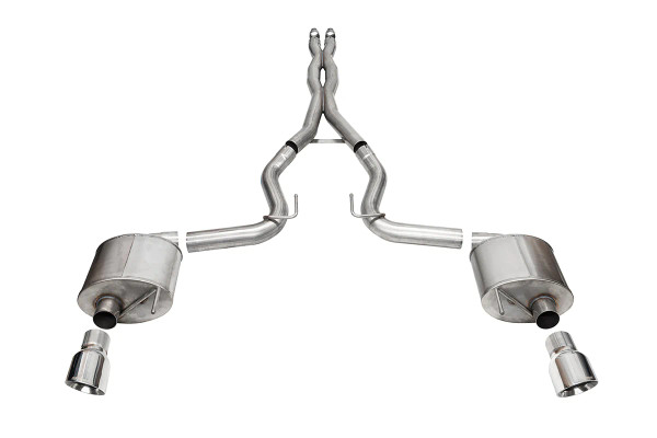 The Corsa Sport 3.0in Cat-Back Exhaust system delivers a refined, performance-oriented exhaust note to your 2024+ Mustang GT Coupe. By improving exhaust flow, this system offers substantial gains in horsepower and torque, enhancing throttle response and the overall dynamics of your Mustang GT. This upgrade not only boosts your vehicle's performance but also surrounds you with a deep, resonant sound that complements the car's high-performance nature, enriching every drive.