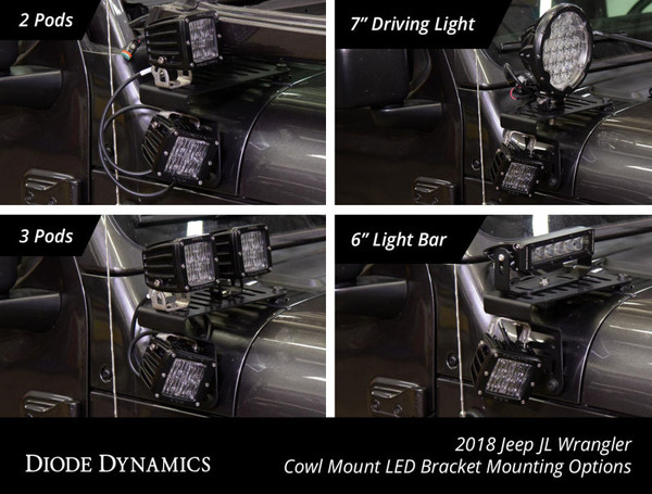 Diode Dynamics 2018-2025 Jeep JL Wrangler/Gladiator SS3 Cowl LED Bracket Kit - White Pro