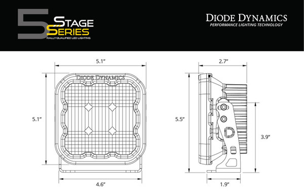 Advanced TIR optics provide high efficiency and focus. High-intensity automotive-type LEDs. Pin-fin heatsink design. Integrated Deutsch-style connector. Durable powdercoated aluminum construction. Assembled in USA. Included in the box: Two (2) Stage Series 5inch LED Pods. Two (2) Deutsch-style wire pigtails. Two (2) Mounting brackets and hardware.