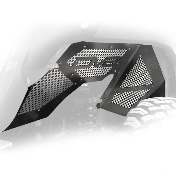 DV8 Off Road Front Black Powdercoated Aluminum finished inner fender for 2018-present Jeep Wrangler JL, are designed to reseal your engine compartment when using aftermarket fenders, clean up your inner fender, and provide better air flow where it counts. 2018-2025 Jeep Wrangler JL Inner Fenders (Front Black) 18-Present Wrangler JL DV8 Offroad 2018 and up Jeep Wrangler JL;2020 and up Jeep Gladiator Fitment: 2018 Jeep Wrangler Rubicon 2018 Jeep Wrangler Sport 2018 Jeep Wrangler Sport S 2018 Jeep Wrangler Unlimited Rubicon 2018 Jeep Wrangler Unlimited Sahara 2018 Jeep Wrangler Unlimited Sport 2018 Jeep Wrangler Unlimited Sport S 2019 Jeep Wrangler Rubicon 2019 Jeep Wrangler Sport 2019 Jeep Wrangler Sport S 2019 Jeep Wrangler Unlimited Rubicon 2019 Jeep Wrangler Unlimited Sahara 2019 Jeep Wrangler Unlimited Sport 2019 Jeep Wrangler Unlimited Sport S 2020 Jeep Gladiator Altitude 2020 Jeep Gladiator Launch Edition 2020 Jeep Gladiator Overland 2020 Jeep Gladiator Rubicon 2020 Jeep Gladiator Sport 2020 Jeep Gladiator Sport S 2020 Jeep Wrangler Rubicon 2020 Jeep Wrangler Sport 2020 Jeep Wrangler Sport S 2020 Jeep Wrangler Unlimited Rubicon 2020 Jeep Wrangler Unlimited Sahara 2020 Jeep Wrangler Unlimited Sport 2020 Jeep Wrangler Unlimited Sport S 2021 Jeep Gladiator High Altitude 2021 Jeep Gladiator Overland 2021 Jeep Gladiator Rubicon 2021 Jeep Gladiator Sport 2021 Jeep Gladiator Sport S 2021 Jeep Wrangler Islander 2021 Jeep Wrangler Rubicon 2021 Jeep Wrangler Sport 2021 Jeep Wrangler Sport S 2021 Jeep Wrangler Unlimited Rubicon 2021 Jeep Wrangler Unlimited Sahara 2021 Jeep Wrangler Unlimited Sport 2021 Jeep Wrangler Unlimited Sport S