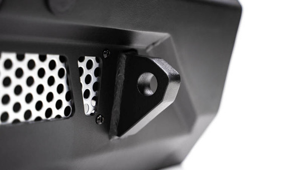 The MTO Series Rear Bumper for the Tundra features a mid-width design with a simple bolt-on installation. Two 3-inch light pods can be mounted behind aluminum accent panels for supplemental rear lighting. There are 2 clevis mounts that take ?-inch D-rings to provide recovery options if needed. Our design retains full functionality of the back-up sensors and the license plate light. There are inset mounting points for installing the OEM reverse lights. The MTO is compatible with the blind spot monitoring sensors, keeping the feature fully functional. 2022-2024 Toyota Tundra