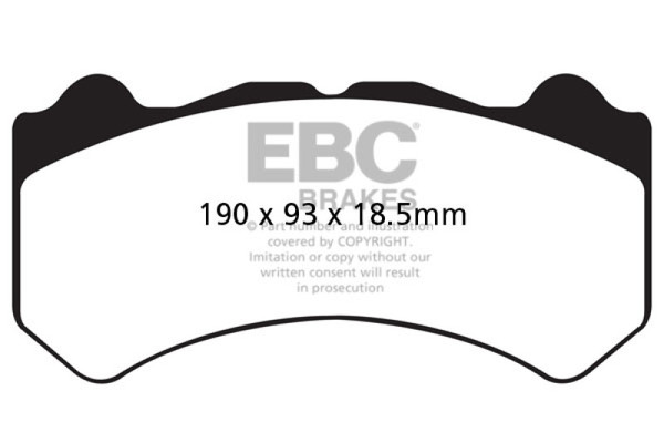 EBC Brakes have demanded a more aggressive full race material for "track only" use that is not required to bring a vehicle to rest (which Bluestuff NDX was specifically designed to do) and this has led to the development of the EBC Orangestuff brake pads. The EBC Orangestuff brake material will be dusty and slightly more aggressive on brake rotors which is the trade off when using a full race pad. The EBC Orangestuff is a full race material for intermediate to expert drivers for demanding track conditions. Designed from the ground up to meet rigorous track conditions meant hours of testing and formulation from EBC's scientist. DO NOT FIT UPGRADE PADS TO REAR OF VEHICLE UNLESS SAME UPGRADE FITTED TO FRONT, The ?Thermic Black coating? does NOT need to be removed before install. Do NOT use brake cleaner or any other method to remove Thermic Black coating from discs rotors. The Thermic black coating will be removed in the pad swept area by the brake pads with in the first 10 to 20 stops made after installation on the vehicle.The ?Thermic Black coating? is an anti corrosion coating for long resistance against rust. Attempting to remove Thermic Black Coating with brake cleaner or any other method is NOT covered under EBC warranty 2008 thru 2011 NISSAN GT-R (R35) 3.8 Twin Turbo (Cast Iron Rotors) Fitment: 2009 Nissan GT-R Base 2009 Nissan GT-R Premium 2010 Nissan GT-R Base 2010 Nissan GT-R Premium 2011 Nissan GT-R Premium 2012 Nissan GT-R Black Edition 2012 Nissan GT-R Premium 2013 Nissan GT-R Black Edition 2013 Nissan GT-R Premium 2014 Nissan GT-R Black Edition 2014 Nissan GT-R Premium 2014 Nissan GT-R Track Edition 2015 Nissan GT-R Black Edition 2015 Nissan GT-R Nismo 2015 Nissan GT-R Premium 2015 Nissan GT-R Track Edition 2016 Nissan GT-R Black Edition 2016 Nissan GT-R Nismo 2016 Nissan GT-R Premium 2017 Aston Martin DB11 Base 2017 Nissan GT-R Nismo 2017 Nissan GT-R Premium 2018 Aston Martin DB11 Base 2018 Nissan GT-R Nismo 2018 Nissan GT-R Premium 2018 Nissan GT-R Pure 2018 Nissan GT-R Track Edition 2019 Aston Martin DB11 Base 2019 Aston Martin DB11 Volante 2019 Nissan GT-R Nismo 2019 Nissan GT-R Premium 2019 Nissan GT-R Pure 2019 Nissan GT-R Track Edition 2020 Nissan GT-R 50th Anniversary Edition 2020 Nissan GT-R Nismo 2020 Nissan GT-R Premium 2020 Nissan GT-R Track Edition 2021 Nissan GT-R Nismo 2021 Nissan GT-R Premium 2022 Nissan GT-R Nismo 2022 Nissan GT-R Premium