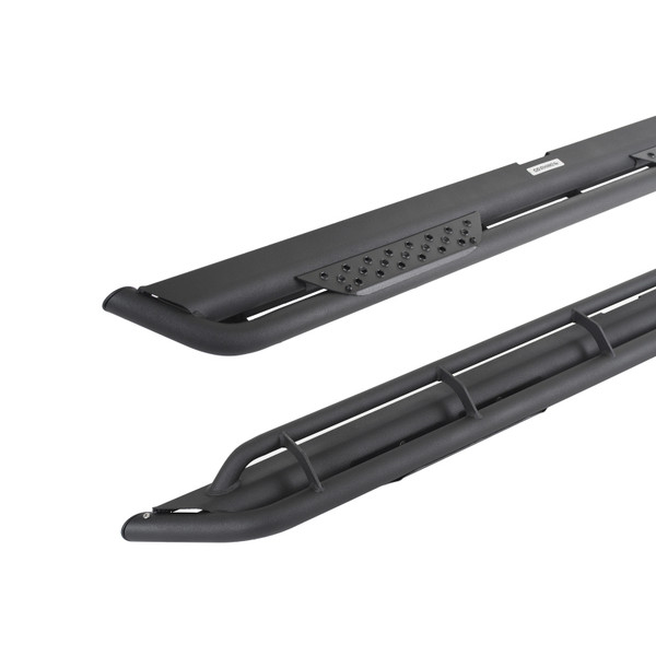 The Dominator Xtreme DT, or Dominator Tri-Tube, features a triple-bar design with full length outer and lower rub rails to give your vehicle a unique, aggressive appearance and increased protection for its body panels from trail obstacles and road debris. The main step platform is protected by a rugged outer rail that is buttressed underneath by the slider tube for additional strength. Two steel step plates with Go Rhino*s signature punched hex pattern offer a safe, no-slip grip. The step plates are removable for a minimal off-road look or paintable for customization. Installation is easy and the utilization of the OEM step locations means no drilling or cutting required. Hardware and brackets are included. The Dominator Xtreme DT Side Steps come with a Limited Lifetime warranty on materials and construction, and a 5-year warranty on the Textured Black powder coat finish. Strong steel side steps doubles as a slider to protect rocker panel Universal Fitment