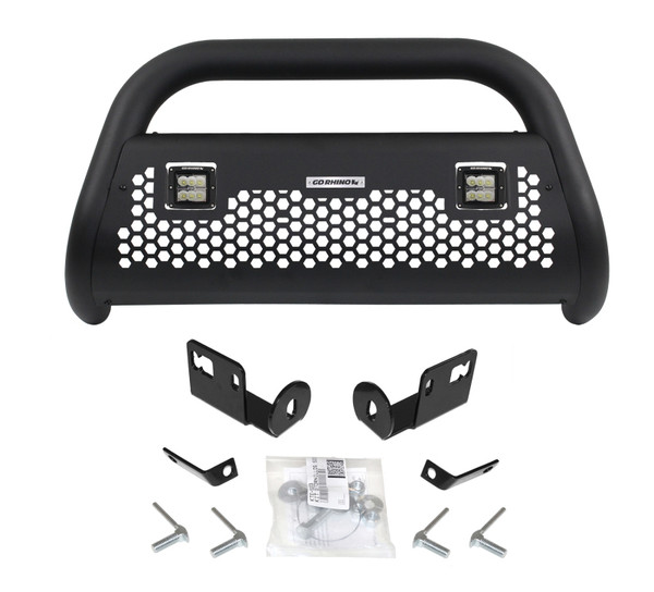 RC2 LR Rhino Charger Bull Bar with two 3 LED Cube Lights and Mounting Brackets The RC2 LR is Go Rhino's newest bull bar. This package includes brackets, a new hexagonal pattern skid plate, and two Go Rhino branded 3 LED lights. 2016-2020 Toyota Tacoma Fitment: 2016 Toyota Tacoma Limited 2016 Toyota Tacoma SR 2016 Toyota Tacoma SR5 2016 Toyota Tacoma TRD Off-Road 2016 Toyota Tacoma TRD Sport 2017 Toyota Tacoma Limited 2017 Toyota Tacoma SR 2017 Toyota Tacoma SR5 2017 Toyota Tacoma TRD Off-Road 2017 Toyota Tacoma TRD Pro 2017 Toyota Tacoma TRD Sport 2018 Toyota Tacoma Limited 2018 Toyota Tacoma SR 2018 Toyota Tacoma SR5 2018 Toyota Tacoma TRD Off-Road 2018 Toyota Tacoma TRD Pro 2018 Toyota Tacoma TRD Sport 2019 Toyota Tacoma Limited 2019 Toyota Tacoma SR 2019 Toyota Tacoma SR5 2019 Toyota Tacoma TRD Off-Road 2019 Toyota Tacoma TRD Pro 2019 Toyota Tacoma TRD Sport 2020 Toyota Tacoma Limited 2020 Toyota Tacoma SR 2020 Toyota Tacoma SR5 2020 Toyota Tacoma TRD Off-Road 2020 Toyota Tacoma TRD Pro 2020 Toyota Tacoma TRD Sport 2021 Toyota Tacoma Limited 2021 Toyota Tacoma SR 2021 Toyota Tacoma SR5 2021 Toyota Tacoma Trail 2021 Toyota Tacoma TRD Off-Road 2021 Toyota Tacoma TRD Pro 2021 Toyota Tacoma TRD Sport