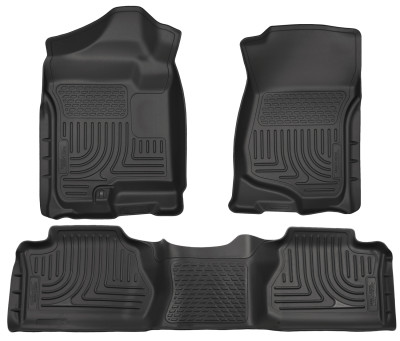 It's unbeatable Husky durability, custom fit to your vehicle, built for a lifetime of abuse. Its DuraGripa*? material stands up to harsh chemicals, while its UniEdgea*? and center channel keep mud, snow and liquids contained, until you're ready to remove, wash and hit the road. Its StayPut Cleatsa*? keep it firmly anchored underfoot, and all Husky Heavy Duty floor mats are guaranteed for life. Found on the floors of the toughest trucks, vans and SUVs on earth. Weatherbeater - Front Floor Liners Liners fit 2007-2013 Silverado/Sierra 1500/2500/3500 Regular Cab trucks. Will not fit Chassis Cab models or trucks with a manual transfer case shifter. Fitment: 2007 Chevrolet Silverado 1500 LT 2007 Chevrolet Silverado 1500 LTZ 2007 Chevrolet Silverado 1500 WT 2007 Chevrolet Silverado 1500 Classic LS 2007 Chevrolet Silverado 1500 Classic LT 2007 Chevrolet Silverado 1500 Classic WT 2007 Chevrolet Silverado 2500 HD LT 2007 Chevrolet Silverado 2500 HD WT 2007 Chevrolet Silverado 2500 HD Classic LS 2007 Chevrolet Silverado 2500 HD Classic LT 2007 Chevrolet Silverado 2500 HD Classic WT 2007 Chevrolet Silverado 3500 HD LT 2007 Chevrolet Silverado 3500 HD LTZ 2007 Chevrolet Silverado 3500 HD WT 2007 GMC Sierra 1500 SLE 2007 GMC Sierra 1500 WT 2007 GMC Sierra 1500 Classic SL 2007 GMC Sierra 1500 Classic SLE 2007 GMC Sierra 1500 Classic WT 2007 GMC Sierra 2500 HD SLE 2007 GMC Sierra 2500 HD WT 2007 GMC Sierra 2500 HD Classic SL 2007 GMC Sierra 2500 HD Classic SLE 2007 GMC Sierra 2500 HD Classic WT 2007 GMC Sierra 3500 HD SLE 2007 GMC Sierra 3500 HD SLT 2007 GMC Sierra 3500 HD WT 2008 Chevrolet Silverado 1500 LT 2008 Chevrolet Silverado 1500 WT 2008 Chevrolet Silverado 2500 HD LT 2008 Chevrolet Silverado 2500 HD WT 2008 Chevrolet Silverado 3500 HD LT 2008 Chevrolet Silverado 3500 HD WT 2008 GMC Sierra 1500 SLE 2008 GMC Sierra 1500 WT 2008 GMC Sierra 2500 HD SLE 2008 GMC Sierra 2500 HD WT 2008 GMC Sierra 3500 HD SLE 2008 GMC Sierra 3500 HD WT 2009 Chevrolet Silverado 1500 LT 2009 Chevrolet Silverado 1500 WT 2009 Chevrolet Silverado 2500 HD LT 2009 Chevrolet Silverado 2500 HD WT 2009 Chevrolet Silverado 3500 HD LT 2009 Chevrolet Silverado 3500 HD WT 2009 GMC Sierra 1500 SLE 2009 GMC Sierra 1500 WT 2009 GMC Sierra 2500 HD SLE 2009 GMC Sierra 2500 HD WT 2009 GMC Sierra 3500 HD SLE 2009 GMC Sierra 3500 HD WT 2010 Chevrolet Silverado 1500 LT 2010 Chevrolet Silverado 1500 WT 2010 Chevrolet Silverado 2500 HD LT 2010 Chevrolet Silverado 2500 HD WT 2010 Chevrolet Silverado 3500 HD LT 2010 Chevrolet Silverado 3500 HD WT 2010 GMC Sierra 1500 SLE 2010 GMC Sierra 1500 WT 2010 GMC Sierra 2500 HD SLE 2010 GMC Sierra 2500 HD WT 2010 GMC Sierra 3500 HD SLE 2010 GMC Sierra 3500 HD WT 2011 Chevrolet Silverado 1500 LT 2011 Chevrolet Silverado 1500 WT 2011 Chevrolet Silverado 2500 HD LT 2011 Chevrolet Silverado 2500 HD WT 2011 Chevrolet Silverado 3500 HD LT 2011 Chevrolet Silverado 3500 HD WT 2011 GMC Sierra 1500 SLE 2011 GMC Sierra 1500 WT 2011 GMC Sierra 2500 HD SLE 2011 GMC Sierra 2500 HD WT 2011 GMC Sierra 3500 HD SLE 2011 GMC Sierra 3500 HD WT 2012 Chevrolet Silverado 1500 LT 2012 Chevrolet Silverado 1500 WT 2012 Chevrolet Silverado 2500 HD LT 2012 Chevrolet Silverado 2500 HD WT 2012 Chevrolet Silverado 3500 HD LT 2012 Chevrolet Silverado 3500 HD WT 2012 GMC Sierra 1500 SLE 2012 GMC Sierra 1500 WT 2012 GMC Sierra 2500 HD SLE 2012 GMC Sierra 2500 HD WT 2012 GMC Sierra 3500 HD SLE 2012 GMC Sierra 3500 HD WT 2013 Chevrolet Silverado 1500 LT 2013 Chevrolet Silverado 1500 WT 2013 Chevrolet Silverado 2500 HD LT 2013 Chevrolet Silverado 2500 HD WT 2013 Chevrolet Silverado 3500 HD LT 2013 Chevrolet Silverado 3500 HD WT 2013 GMC Sierra 1500 SLE 2013 GMC Sierra 1500 WT 2013 GMC Sierra 2500 HD SLE 2013 GMC Sierra 2500 HD WT 2013 GMC Sierra 3500 HD SLE 2013 GMC Sierra 3500 HD WT 2014 Chevrolet Silverado 2500 HD LT 2014 Chevrolet Silverado 2500 HD WT 2014 Chevrolet Silverado 3500 HD LT 2014 Chevrolet Silverado 3500 HD WT 2014 GMC Sierra 2500 HD SLE 2014 GMC Sierra 2500 HD WT 2014 GMC Sierra 3500 HD SLE 2014 GMC Sierra 3500 HD WT