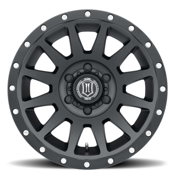 Bring a bold new look to your ride with the all-new ICON Alloys COMPRESSION! Combining sharp lines, a concave spoke design, and "ICON-optimized" dimensions, these wheels will increase both the form and function of your Jeep, truck, or SUV. Staying true to the ICON Alloys approach, the COMPRESSION has been engineered to maximize caliper clearance and optimize wheel position for un-hindered suspension travel and steering function. Backspace dimensions and wheel offset have been strategically developed to reduce scrub radius, improving all-around handling and ride quality and making a set of these wheels the perfect complement to an ICON Vehicle Dynamics suspension system. ICON ALLOYS COMPRESSION SATIN BLACK - 17 X 8.5 / 6 X 5.5 BOLT PATTERN / 25MM OFFSET / 5.75" BACKSPACE