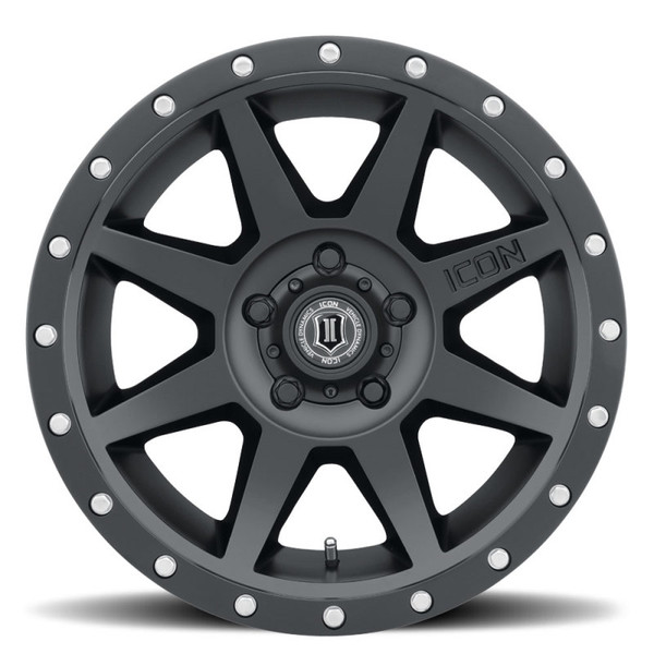 Bring a bold new look to your ride with the all-new ICON Alloys REBOUND! Combining sharp lines, a concave spoke design, and "ICON-optimized" dimensions, these wheels will increase both the form and function of your Jeep, truck, or SUV. Staying true to the ICON Alloys approach, the REBOUND has been engineered to maximize caliper clearance and optimize wheel position for un-hindered suspension travel and steering function. Backspace dimensions and wheel offset have been strategically developed to reduce scrub radius, improving all-around handling and ride quality and making a set of these wheels the perfect complement to an ICON Vehicle Dynamics suspension system. ICON ALLOYS REBOUND SATIN BLACK - 17 X 8.5 / 5 X 5.5 BOLT PATTERN / 0MM OFFSET / 4.75" BACKSPACE