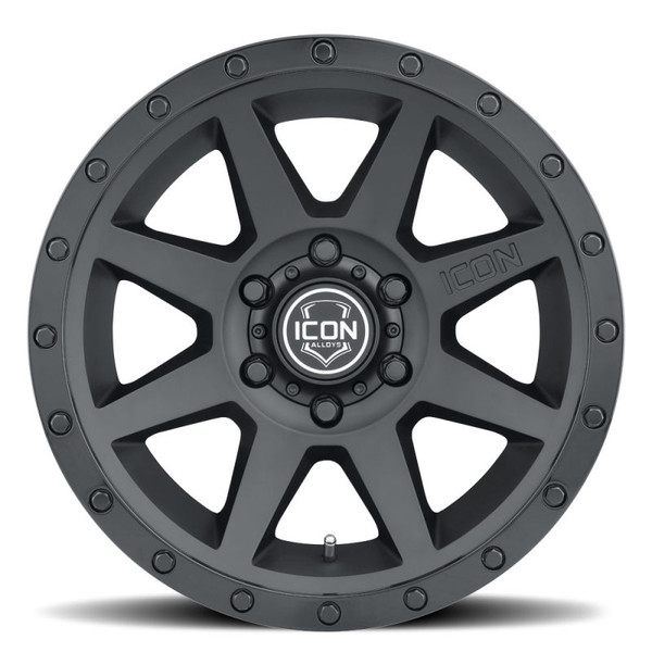 The 18x9 'Rebound' wheel is designed to enhance a truck’s appearance and handling with its application-optimized backspacing for better wheel fitment, maximized caliper clearance, reduced scrub radius and unhindered suspension travel – improving all-around handling and ride quality. Constructed using a high-strength aluminum alloy, the 18x9 'Rebound' will deliver the strength needed to withstand off-road excursions and towing/hauling duty. Combining sharp lines, a concave spoke design, and “ICON-optimized” dimensions, these Rebound Double Black wheels will increase the form and function of a vehicle.
