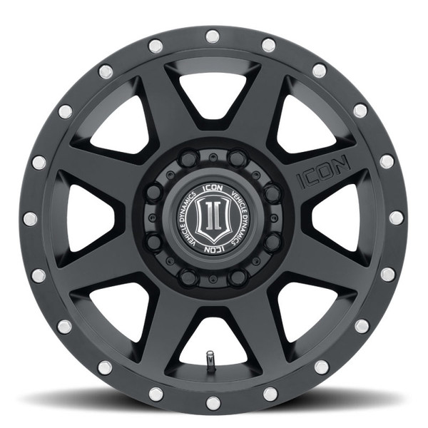 The 18x9 'Rebound' wheel is designed to enhance a truck’s appearance and handling with its application-optimized backspacing for better wheel fitment, maximized caliper clearance, reduced scrub radius and unhindered suspension travel – improving all-around handling and ride quality. Constructed using a high-strength aluminum alloy, the 18x9 'Rebound' will deliver the strength needed to withstand off-road excursions and towing/hauling duty. ICON ALLOYS REBOUND HD SATIN BLACK - 18 X 9 / 8 X 6.5 BOLT PATTERN / 12MM OFFSET / 5.5" BACKSPACE