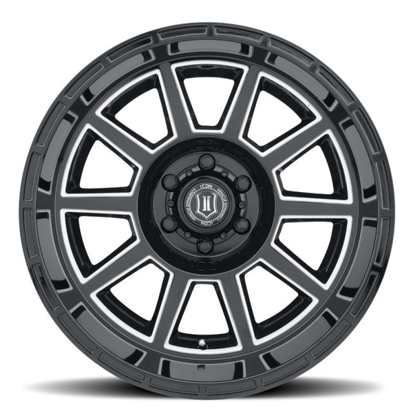 Give your vehicle a bold look and an aggressive stance with the ICON Alloys 'Recoil' wheel! The 20x10” Recoil is offered in several bolt patterns with backspace and offset dimensions designed to provide a modern style that is guaranteed to turn heads. These wheels yield a beefy 2,750-lb load rating retaining the strength that ICON Alloys is known for. Combining sharp lines, a concave spoke design, an extra deep lip, and style-focused dimensions, these wheels will increase both the form and function of your vehicle. Engineered to enhance the overall look of your vehicle but the durability and ruggedness as well. Available in Gloss Black and Gloss Black w/ Milled Windows, the Recoil has a classic style with the strength to match. ICON ALLOYS RECOIL GLOSS BLACK WITH MILLED WINDOWS- 20x10" / 6 x 5.5 BOLT PATTERN / -24MM OFFSET / 4.5" BACKSPACE
