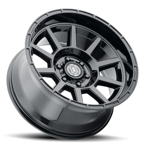 Give your vehicle a bold look and an aggressive stance with the ICON Alloys 'Recoil' wheel! The 20x10” Recoil is offered in several bolt patterns with backspace and offset dimensions designed to provide a modern style that is guaranteed to turn heads. These wheels yield a beefy 2,750-lb load rating retaining the strength that ICON Alloys is known for. Combining sharp lines, a concave spoke design, an extra deep lip, and style-focused dimensions, these wheels will increase both the form and function of your vehicle. Engineered to enhance the overall look of your vehicle but the durability and ruggedness as well. Available in Gloss Black and Gloss Black w/ Milled Windows, the Recoil has a classic style with the strength to match. ICON ALLOYS RECOIL GLOSS BLACK - 20x10" / 6 x 5.5 BOLT PATTERN / -24MM OFFSET / 4.5" BACKSPACE