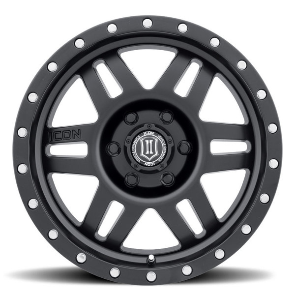 Staying true to the ICON Alloys approach, the Ranger-spec Six Speed has been engineered not only improve the looks and "stance" of your Ford Ranger, but the overall handling and ride quality of the vehicle as well. Available in Satin Black, Bronze, and Titanium finishes with color-matched rock ring bolts, the Six Speed has a classic style with strength to match. With looks and build features such as these, it's clear that a set of ICON Alloys Six Speed wheels is the perfect complement to an ICON Vehicle Dynamics suspension system. ICON ALLOYS SIX SPEED SATIN BLACK - 17 X 8.5 / 6 X 5.5 BOLT PATTERN / 25MM OFFSET / 5.75" BACKSPACE