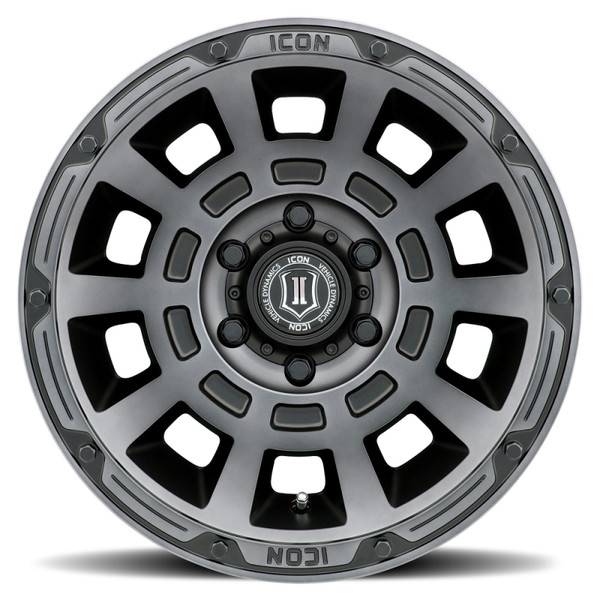 Staying true to the ICON Alloys approach, the 17” Thrust has been engineered to maximize caliper clearance and optimize wheel position for un-hindered suspension travel and steering function. Backspace and wheel offset dimensions have been strategically developed to reduce scrub radius, improving all-around handling and ride quality. The ICON Alloys Thrust has also been strength tested to yield a 2,750lb load rating - making it one of the strongest wheel options on the market! With build features such as these, it's clear that a set of ICON Alloys Thrust wheels is the perfect complement to an ICON Vehicle Dynamics suspension system. ICON ALLOYS THRUST SMOKED SATIN BLACK - 17 X 8.5 / 5 X 4.5 BOLT PATTERN / 0MM OFFSET / 4.75" BACKSPACE
