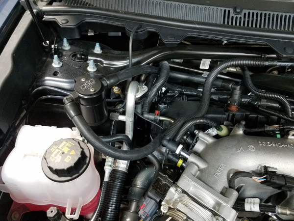 During the process of venting crankcase pressure back through your intake track, large amounts of oil, in the form of vapors can gather/accumulate in your intake tube, intake manifold runners and even dilute your gas, lowering its octane level. This happens on all engines and is even worse with forced inducted vehicles (supercharged and turbocharged) as crankcase pressures are increased. To combat this, we have developed an oil separator of our own design. Milled from solid billet aluminum this is a rock-solid piece. It has a knurled tank base for easy removal to drain the spent oil and an O-ring seal to prevent any leaks. Filtering consists of a fine mesh stainless steel screen that traps fine oil vapors and releases them once heavy enough to fall. They then pass through a 1/2" thick 1/16th" aluminum honeycomb filter where they grow every larger and then fall into the bottom. By the time the oil gets through the filter it's too heavy to be passed on into the intake. The tank holds 3 oz of fluid, while that may not sound like a lot, you shouldn’t see that much oil in your PCV system. Drain it every 2000-3000 miles and you will never come close to filling it. J&L Oil Separator 3.0 Passenger Side, Black Anodized (2010-2019 Ford Flex EcoBoost V6)