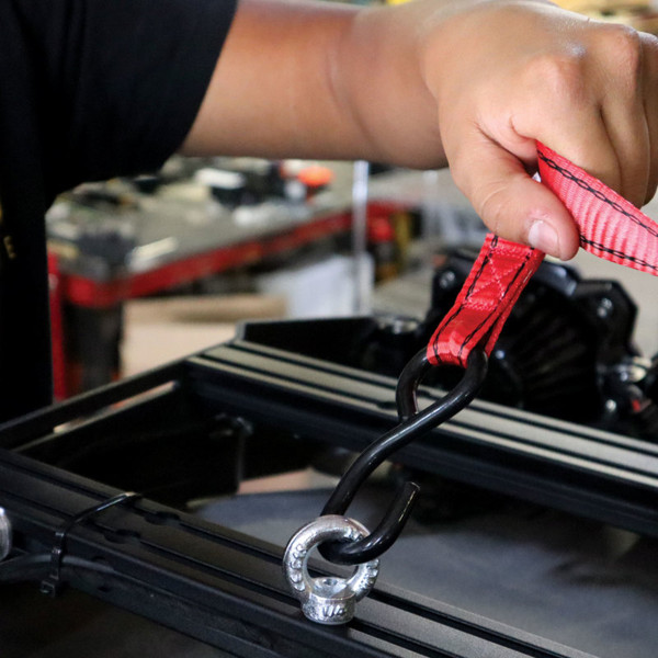 NOTES: Eye Nuts for our KC M-RACKS Roof Racks are a great way to more easily mount and attach gear to the top of your roof rack. From storage containers, to bikes, to anything else, these easy to install tie-down points for your roof rack can help you strap it down. They create an easy tie-down point for securing gear to your roof rack, have a large opening hole that is compatible with most tie-down cam buckle straps, ratchet straps, cinch straps, and bungee cords. Plastic washer ensures a quiet ride for no metal-on-metal vibrations or noise. Universal fit for use on any of our KC M-RACKS Roof Racks. Eye Nuts for our KC M-RACKS Roof Racks are a great way to more easily mount and attach gear to the top of your roof rack. From storage containers, to bikes, to anything else, these easy to install tie-down points for your roof rack..