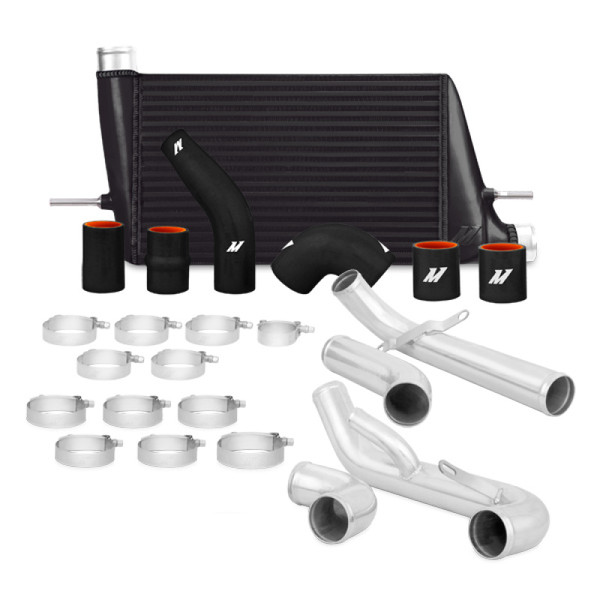 A high-horsepower Evo demands an intercooler setup that provides optimal airflow and a cool, dense charge of air. Modified vehicles running high boost pressures often have increased air intake temperatures (AITs) and heat soak, both of which can result in diminished performance. Keep your intake temperatures under control with the Mishimoto Mitsubishi Lancer Evolution X Performance Intercooler kit. This intercooler kit is a direct bolt-on unit engineered specifically for the Evo X. Thanks to an efficient 3.5-inch thick bar-and-plate core, this intercooler provides optimal heat dissipation and low AITs. The robust cast aluminum end tanks provide superior durability and smooth, uninterrupted airflow. The intercooler core is a strategic fin design that promotes substantial heat exchange while providing minimal pressure loss across the core. This kit also features polished 2.5-inch mandrel-bent aluminum piping and four-layer 100-percent silicone couplers with heat-resistant embedded fibers. These couplers offer increased heat and pressure tolerance compared to the factory rubber connections. Dependable charge-air connections are essential for reliable operation. The Mishimoto Mitsubishi Evolution X Intercooler Pipe Kit includes high-quality stainless steel T-bolt clamps for each connection. These clamps provide the holding power you need for increased boost pressures! The Mishimoto Mitsubishi Lancer Evolution X Performance Intercooler kit provides a dyno-proven increase of 10 whp and 10 tq, and it will support modified vehicles up to 600 whp! Whether you are making a pass at the drag strip or sliding around a rally stage, this intercooler kit will provide the cooling that your engine needs to perform at its best. This intercooler is available with a powder-coated finish in Sleek Silver or Stealth Black. As with all our products, this intercooler kit includes the Mishimoto Lifetime Warranty, ensuring superior product quality and craftsmanship. Performance Intercooler Kit, fits Mistubishi Lancer Evolution X 2008-2015 2010-2011 Mitsubishi Lancer Evolution GSR 2.0 Liter TC-SST, 2008 Mitsubishi Lancer Evolution GSR 2.0 Liter W5M6A, 2010-2014 Mitsubishi Lancer Evolution GSR 2.0 Liter W5M6A, 2008 Mitsubishi Lancer Evolution MR 2.0 Liter TC-SST, 2010-2014 Mitsubishi Lancer Evolution MR 2.0 Liter TC-SST, 2010-2011 Mitsubishi Lancer Evolution MR Touring 2.0 Liter TC-SST Fitment: 2008 Mitsubishi Lancer Evolution GSR 2008 Mitsubishi Lancer Evolution MR 2010 Mitsubishi Lancer Evolution GSR 2010 Mitsubishi Lancer Evolution MR 2010 Mitsubishi Lancer Evolution MR Touring 2011 Mitsubishi Lancer Evolution GSR 2011 Mitsubishi Lancer Evolution MR 2011 Mitsubishi Lancer Evolution MR Touring 2012 Mitsubishi Lancer Evolution GSR 2012 Mitsubishi Lancer Evolution MR 2013 Mitsubishi Lancer Evolution GSR 2013 Mitsubishi Lancer Evolution MR 2014 Mitsubishi Lancer Evolution GSR 2014 Mitsubishi Lancer Evolution MR