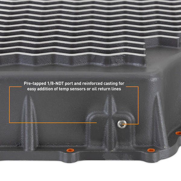 This Mishimoto Aluminum Transmission Pan is a direct-fit, high-performance upgrade for your 2011-2019 Ford 6.7L Powerstroke. Cast from high-quality aluminum and powder coated Gunmetal Gray, our transmission pan is a robust and long-lasting upgrade for your vehicle's transmission. With a sleek design and bottom ribs, this pan not only adds to the overall aesthetic of your truck but also provides improved cooling performance.----This transmission pan features internal baffles that reduce sloshing and enhance heat dissipation, resulting in smoother transmission performance. All the headaches that come with a flat gasket and messy sealants are eliminated with our precision-machined dovetail-style groove and O-ring seal. This groove positively retains the O-ring, so you never have to worry about it falling out of place during installation. Additionally, the Mishimoto 2011-2019 Ford 6.7L Powerstroke Aluminum Transmission Pan adds an extra 5.9 quarts of ATF to help maintain optimal transmission operation.----Fed up with the frustration of trying to hold up a transmission pan with one hand while threading the fasteners in with the other? Mishimoto has you covered with pre-installed bolt retainers that hold the fasteners in the pan, allowing you to easily thread the bolts without dropping them on the ground, your head, or worse, that pan of nasty transmission fluid you just drained. Additionally, our pan comes equipped with a magnetic drain plug for easy draining and a 1/8-inch NPT port and plug for temperature sensors to make servicing your transmission and monitoring temperatures a breeze.----This direct-fit upgrade offers affordable durability and helps maintain smooth transmission operation, ensuring a long life for your transmission. Like all Mishimoto products, this transmission pan is backed by the Mishimoto Lifetime Warranty. Fitment: 2011 Ford F-250 Super Duty King Ranch 2011 Ford F-250 Super Duty Lariat 2011 Ford F-250 Super Duty XL 2011 Ford F-250 Super Duty XLT 2011 Ford F-350 Super Duty King Ranch 2011 Ford F-350 Super Duty Lariat 2011 Ford F-350 Super Duty XL 2011 Ford F-350 Super Duty XLT 2012 Ford F-250 Super Duty King Ranch 2012 Ford F-250 Super Duty Lariat 2012 Ford F-250 Super Duty XL 2012 Ford F-250 Super Duty XLT 2012 Ford F-350 Super Duty King Ranch 2012 Ford F-350 Super Duty Lariat 2012 Ford F-350 Super Duty XL 2012 Ford F-350 Super Duty XLT 2013 Ford F-250 Super Duty King Ranch 2013 Ford F-250 Super Duty Lariat 2013 Ford F-250 Super Duty Platinum 2013 Ford F-250 Super Duty XL 2013 Ford F-250 Super Duty XLT 2013 Ford F-350 Super Duty King Ranch 2013 Ford F-350 Super Duty Lariat 2013 Ford F-350 Super Duty Platinum 2013 Ford F-350 Super Duty XL 2013 Ford F-350 Super Duty XLT 2014 Ford F-250 Super Duty King Ranch 2014 Ford F-250 Super Duty Lariat 2014 Ford F-250 Super Duty Platinum 2014 Ford F-250 Super Duty XL 2014 Ford F-250 Super Duty XLT 2014 Ford F-350 Super Duty King Ranch 2014 Ford F-350 Super Duty Lariat 2014 Ford F-350 Super Duty Platinum 2014 Ford F-350 Super Duty XL 2014 Ford F-350 Super Duty XLT 2015 Ford E-350 Super Duty Base 2015 Ford F-250 Super Duty King Ranch 2015 Ford F-250 Super Duty Lariat 2015 Ford F-250 Super Duty Platinum 2015 Ford F-250 Super Duty XL 2015 Ford F-250 Super Duty XLT 2015 Ford F-350 Super Duty King Ranch 2015 Ford F-350 Super Duty Lariat 2015 Ford F-350 Super Duty Platinum 2015 Ford F-350 Super Duty XL 2015 Ford F-350 Super Duty XLT 2016 Ford E-350 Super Duty Base 2016 Ford F-250 Super Duty King Ranch 2016 Ford F-250 Super Duty Lariat 2016 Ford F-250 Super Duty Platinum 2016 Ford F-250 Super Duty XL 2016 Ford F-250 Super Duty XLT 2016 Ford F-350 Super Duty King Ranch 2016 Ford F-350 Super Duty Lariat 2016 Ford F-350 Super Duty Platinum 2016 Ford F-350 Super Duty XL 2016 Ford F-350 Super Duty XLT 2017 Ford E-350 Super Duty Base 2017 Ford F-250 Super Duty King Ranch 2017 Ford F-250 Super Duty Lariat 2017 Ford F-250 Super Duty Platinum 2017 Ford F-250 Super Duty XL 2017 Ford F-250 Super Duty XLT 2017 Ford F-350 Super Duty King Ranch 2017 Ford F-350 Super Duty Lariat 2017 Ford F-350 Super Duty Platinum 2017 Ford F-350 Super Duty XL 2017 Ford F-350 Super Duty XLT 2018 Ford E-350 Super Duty Base 2018 Ford F-250 Super Duty King Ranch 2018 Ford F-250 Super Duty Lariat 2018 Ford F-250 Super Duty Limited 2018 Ford F-250 Super Duty Platinum 2018 Ford F-250 Super Duty XL 2018 Ford F-250 Super Duty XLT 2018 Ford F-350 Super Duty King Ranch 2018 Ford F-350 Super Duty Lariat 2018 Ford F-350 Super Duty Limited 2018 Ford F-350 Super Duty Platinum 2018 Ford F-350 Super Duty XL 2018 Ford F-350 Super Duty XLT 2019 Ford E-350 Super Duty Base 2019 Ford F-250 Super Duty King Ranch 2019 Ford F-250 Super Duty Lariat 2019 Ford F-250 Super Duty Limited 2019 Ford F-250 Super Duty Platinum 2019 Ford F-250 Super Duty XL 2019 Ford F-250 Super Duty XLT 2019 Ford F-350 Super Duty King Ranch 2019 Ford F-350 Super Duty Lariat 2019 Ford F-350 Super Duty Limited 2019 Ford F-350 Super Duty Platinum 2019 Ford F-350 Super Duty XL 2019 Ford F-350 Super Duty XLT 2020 Ford F-250 Super Duty King Ranch 2020 Ford F-250 Super Duty Lariat 2020 Ford F-250 Super Duty Limited 2020 Ford F-250 Super Duty Platinum 2020 Ford F-250 Super Duty XL 2020 Ford F-250 Super Duty XLT 2021 Ford E-350 Super Duty Base 2021 Ford F-250 Super Duty King Ranch 2021 Ford F-250 Super Duty Lariat 2021 Ford F-250 Super Duty Limited 2021 Ford F-250 Super Duty Platinum 2021 Ford F-250 Super Duty XL 2021 Ford F-250 Super Duty XLT 2022 Ford E-350 Super Duty Base 2022 Ford F-250 Super Duty King Ranch 2022 Ford F-250 Super Duty Lariat 2022 Ford F-250 Super Duty Limited 2022 Ford F-250 Super Duty Platinum 2022 Ford F-250 Super Duty XL 2022 Ford F-250 Super Duty XLT 2023 Ford E-350 Super Duty Base
