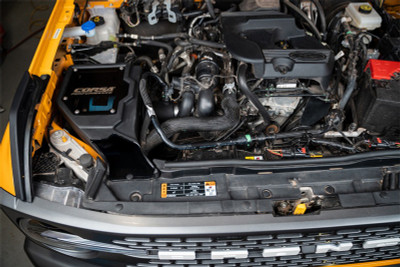 The Bronco is back, and with two options of powerful turbocharged engines, it was born to run free. The 2.3L EcoBoost cranks out 300 horsepower and 325 lb.-ft. of torque, making it capable both on and off-road. But what enthusiast doesn’t want more from their vehicle? We here at Mishimoto are never ones to settle for stock, that’s why we’ve developed this performance intake for your 2021-2024 Ford Bronco 2.3L EcoBoost. The Mishimoto 2021-2024 Ford Bronco 2.3L EcoBoost performance intake is constructed from rotational molded cross-linked polyethylene. This ultra-strong material allows us to create smooth airflow while effectively keeping engine bay heat out of your intake air. This construction, combined with the 4.5-in high-flow filter, results in an intake that is 29% less restrictive than stock. To keep the intake flowing through any terrain, we’ve also maintained the stock fresh air inlet, which features a dust trap to protect the air filter from dust and debris. If you’re ready to let your 2021-2024 Ford Bronco 2.3L EcoBoost breathe as free as it can run, this Mishimoto Performance intake is for you. And, like all Mishimoto products, it’s backed by our Lifetime Warranty, so you can drive easy knowing we’ve got you covered. Performance Air Intake, Fits Ford Bronco 2.3L EcoBoost 2021-2024, Dry Washable Filter