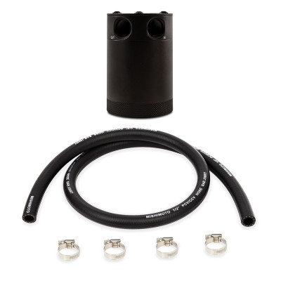 Tired of removing the bottom half of your Mishimoto Compact Baffled Oil Catch Can in order to drain the accumulated blow-by? The engineers at Mishimoto have answered with the Compact Baffled Oil Catch Can Petcock Drain Kit. The 6' of black rubber hose allows you to easily splice the black nylon ball valve into the hose wherever works best for you! The included 3/8" NPT to 3/8" hose barb black nylon fitting, which replaces the current plug in your catch can bottom, and three worm-gear clamps make installing this petcock drain plug a breeze. As with all our products, this kit includes the Mishimoto Lifetime Warranty. Universal Fitment