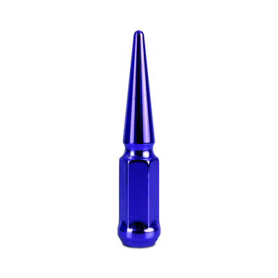 The details matter when you're building your dream car. Every bolt is meticulously chosen for not only function, but also aesthetics. This philosophy extends to every part of the car, including the lug nuts. To add aggressive style to your wheels, Mishimoto now offers high-quality spiked lug nuts----These cold-forged, carbon steel lug nuts feature a 4-inch spike design that will add an aggressive look to any set of wheels. These lug nuts feature a 60-degree tapered/acorn seat and M14x1.5 threads that are suitable for many aftermarket wheels. The one-piece design and electroplated coating ensure unparalleled durability in any climate. To make installation easy, wea**ve included an extra-deep socket with 19 mm and 21mm hex ends. We offer these lug nuts in a variety of colors to suit any color scheme, including black, blue, red, chrome or gold and in kits of 24 or 32 pieces. Like all Mishimoto products, these spiked lug nuts include our Mishimoto Lifetime Warranty for long-lasting style. Mishimoto Spiked Lug Nuts, M14x1.5, 24-PC Set, Blue