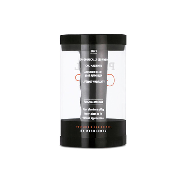 Grip and rip on your shifter in comfort. This Mishimoto pistol grip shifter is ergonomically designed for maximum comfort. Unlike many other pistol grip shift knobs this one actually fits to your fingers. CNC-machined from billet 6061 aluminum, this knob weighs in at 204g for a precise and accurate shifter feel. Four plastic inserts allow for fitment on a wide variety of vehicles. Pistol Grip Shift Knob - Black