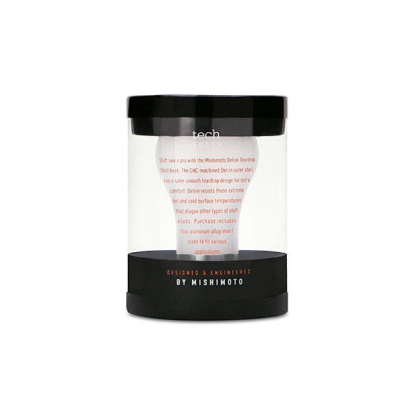 Mishimoto's teardrop shift knob puts a little twist on a classic design. The 2-piece hybrid design incorporates a heavy stainless steel core and a thermoplastic outer shell. The thermoplastic material provides protection against extreme surface temperatures. The thermoplastic shell is available in black or white to help match the style of your interior. This teardrop shift knob weighs in at 294g to provide precise and accurate shifts. This shifter features a plastic insert with three set screws for fitment onto unthreaded shift leavers along with four plastic threaded inserts to allow for fitment on various other vehicles. Teardrop Shift Knob - Black, White