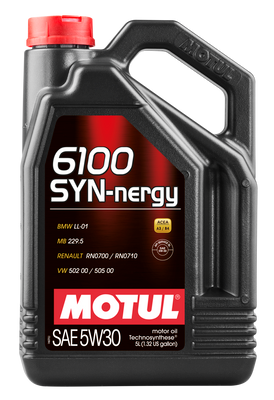 sold out quick view Out of stock, please check back as inventory changes daily. Motul Motul 5L Technosynthese Engine Oil 6100 SYN-NERGY 5W30 - VW 502 00 505 00 - MB 229.5 - Case of 4 MSRP: $202.90 $182.61 Technosynthese lubricant providing high protection and high performance. Specially designed for the latest generation of cars powered by gasoline and diesel engine requiring ACEA A3 / B4 and API SL... Out of stock, please check back as inventory changes daily. Add to Wish List Add to My Wish List Create New Wish List
