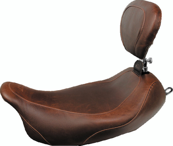 Mustang designers took one of the most popular seat platforms and gave it a completely new-and-improved look! The all-new Squareback for '08-up H-D Touring features a stylish split-panel tuck-&-roll design with contrasting smooth and perforated vinyl for a clean custom appearance. The recessed cross section helps alleviate tailbone pressure, while brass grommets add distinctive styling. Riders are seated in a 10.5" wide driver bucket in a position similar to stock, but benefit from significantly increased lower back support thanks to the high-rising wall. A squared-off 6.5" wide tail section provides a level foundation for passengers or luggage.