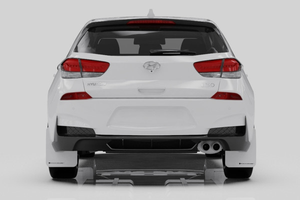 Crafted from premium polyurethane, these UR (as in "you are") mud flaps have been engineered to perform consistently in a variety of environments. Our flexible UV-resistant urethane mud flaps are durably abrasion resistant and long wearing. These UR (as in "you are") premium urethane mud flaps are formed for variably high hot and/or low cold temperatures giving drivers 4 corner protection against salt, spray, paint damaging gravel, tar and grime that prematurely wear the vehicle finish away. Where vinyl and rubber manifests steady, visible material curling and wear over time, strong urethane construction maintains its form through all weather conditions. UR series mud flaps are made in the USA from tested, tear/shock resistant polyurethane that retains flexibility and form for all conditions ? the type to endure arctic cold and desert heat conditions without degrading, deforming or warping. 2019+ Hyundai Elantra Elantra GT N-line, i30 N - Will not fit Base Elantra