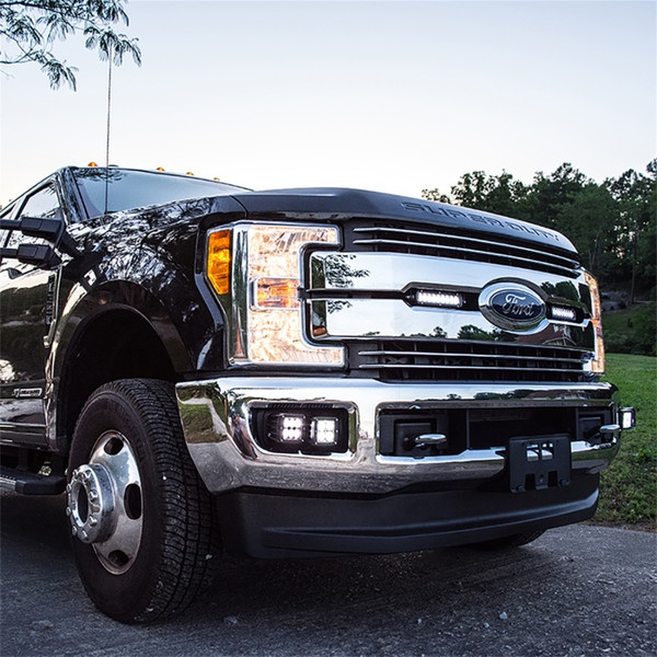 This RIGID Fog Light mount is designed specifically for the 2017-2019 Ford Super Duty and allows for a clean install of RIGID's high output LED lighting in your Super Duty OEM fog lamp locations. This fog light mount will allow you to mount up to for RIGID D-Series lights, two on each mount. Own The Night with RIGID's A-Pillar LED mount for your Ford Super Duty. All of RIGID's grilles, OE Brackets, and mounts are made with stainless steel and covered with UV and abrasion resistant powder coat to ensure years of use in the harshest conditions. Professional installation recommended. RIGID 2017-2019 Ford Super Duty Dual Fog Mounts Professional Installation Recommended 2017 - 2019 Ford Super Duty