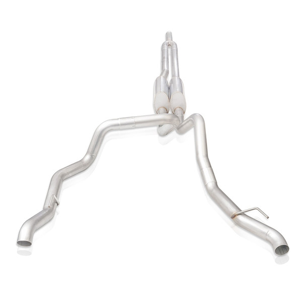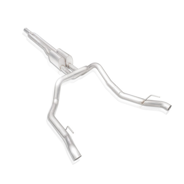 Buy with confidence at Just Bolt-On Performance Parts for your Stainless Works 2019-2020 Chevy Silverado 5.3L & 2019-2020 GMC Sierra 5.3L Legend Exhaust Dual Exit Under Rear Bumper - Use Factory Tips (Factory Connect) #CT19CBUBYL.