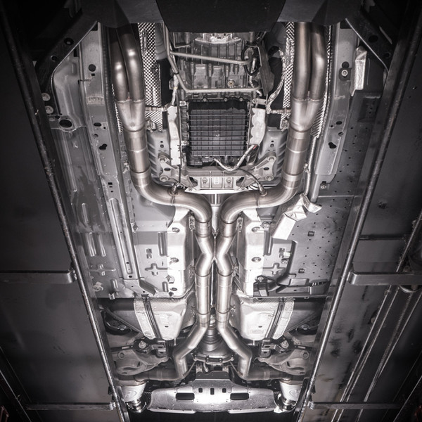 Improve sound and performance on your 2020-2022 GT500 with this Redline catback from Stainless Works. We?ve engineered a drone free aggressive muffler tuned specifically for this improved coyote engine from Ford. Featuring the latest in active exhaust technology, our in-house engineered valve bolts directly to the factory electronics to allow for all exhaust modes. From the closed valve ?Quiet? mode, to the chambered ?Normal? mode and to the wide open straight through design on the ?Track? mode. 2020-2022 Ford GT500 Redline catback system featuring an x-pipe crossover and polished tips. 2020-2022 Mustang GT500