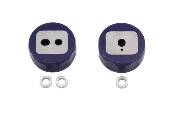 This kit replaces the forward differential mount bushings - known as the pinion mount bushings. The OEM units are soft rubber and break down fairly quickly with that wear accelerated the harder they are used. The worn bushings allow more movement of the rear differential under changing loads.This can intially be felt behind the wheel as slower and sloppier responsiveness, and as the OEM bushings near the end of their life or fair it can be accompanied by noise, vibration and secondary movements under changing loads - especially as you get on the gas and come back off of it.SuperPro's differential mount upgrades maintain OEM levels of noise, vibrations and harshness isolation in the cabin so your car maintains the new factory levels of comfort. At the same time performance is significantly improved with the differential more accurately located under a wider range of conditions and the service life dramatically improved with our materials maintaining peak performance throughout their life rather than slowly softening and degrading like natural rubber